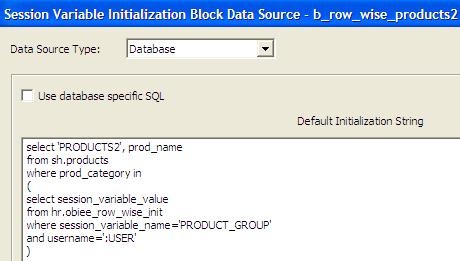 For the UserA and UserB we'll read product groups from our row-wise initialization table (in this example it is more like LOV table) and populate it into row-wise initialization block that return product list for each user and product group.
